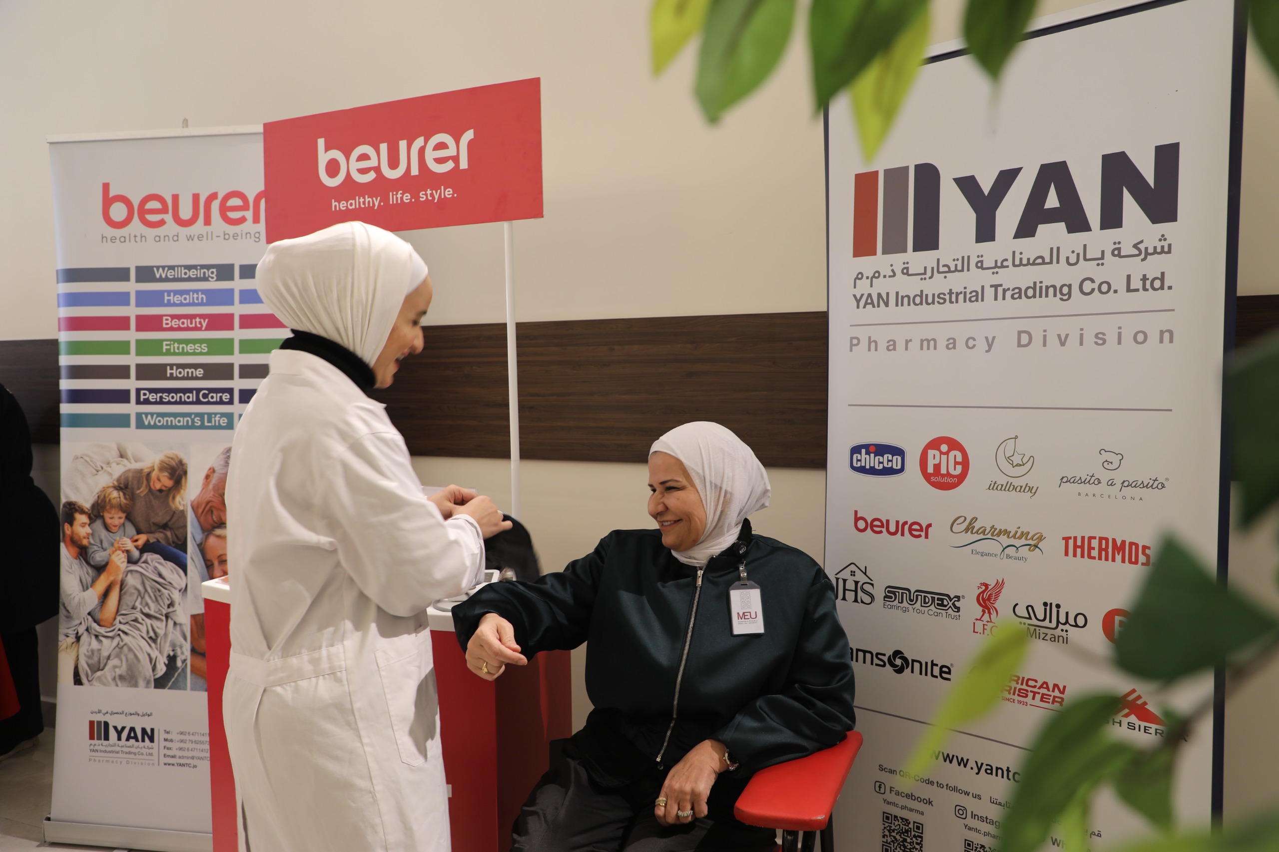 وتعزّز البعد التطبيقي عبر فحوصات ميدانية أجراها شركاء الجامعة، حيث نفّذ فريق شركة يان الصناعية التجارية YAN قياسات ضغط الدم، فيما قدّمت MedLabs تحاليل مستوى السكر، إضافة إلى تحاليل تركيب الجسم باستخدام أجهزة Tanita لقياس الدهون والكتلة العضلية والعمر الأيضي.