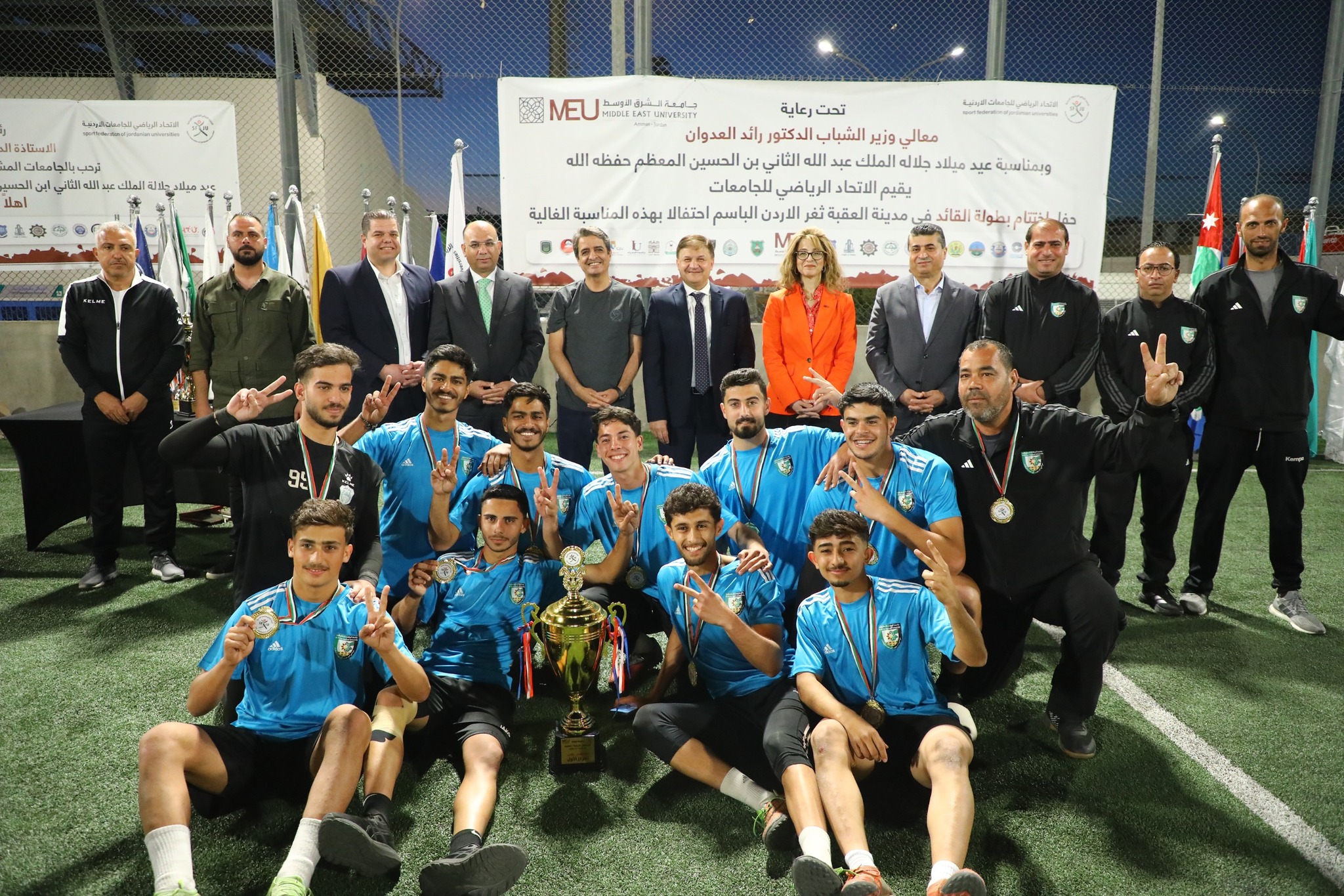 اختُتمت بطولة اتحاد الجامعات الأردنية “بطولة القائد” في حفلٍ أُقيم تحت رعاية معالي وزير الشباب الدكتور رائد العدوان، وبحضور رئيسة الاتحاد الرياضي للجامعات الأردنية، رئيسة جامعة الشرق الأوسط عطوفة الأستاذة الدكتورة سلام المحادين، ومحافظ العقبة عطوفة الباشا أيمن العوايشة، وعمداء شؤون الطلبة، وممثلي الجامعات المشاركة.