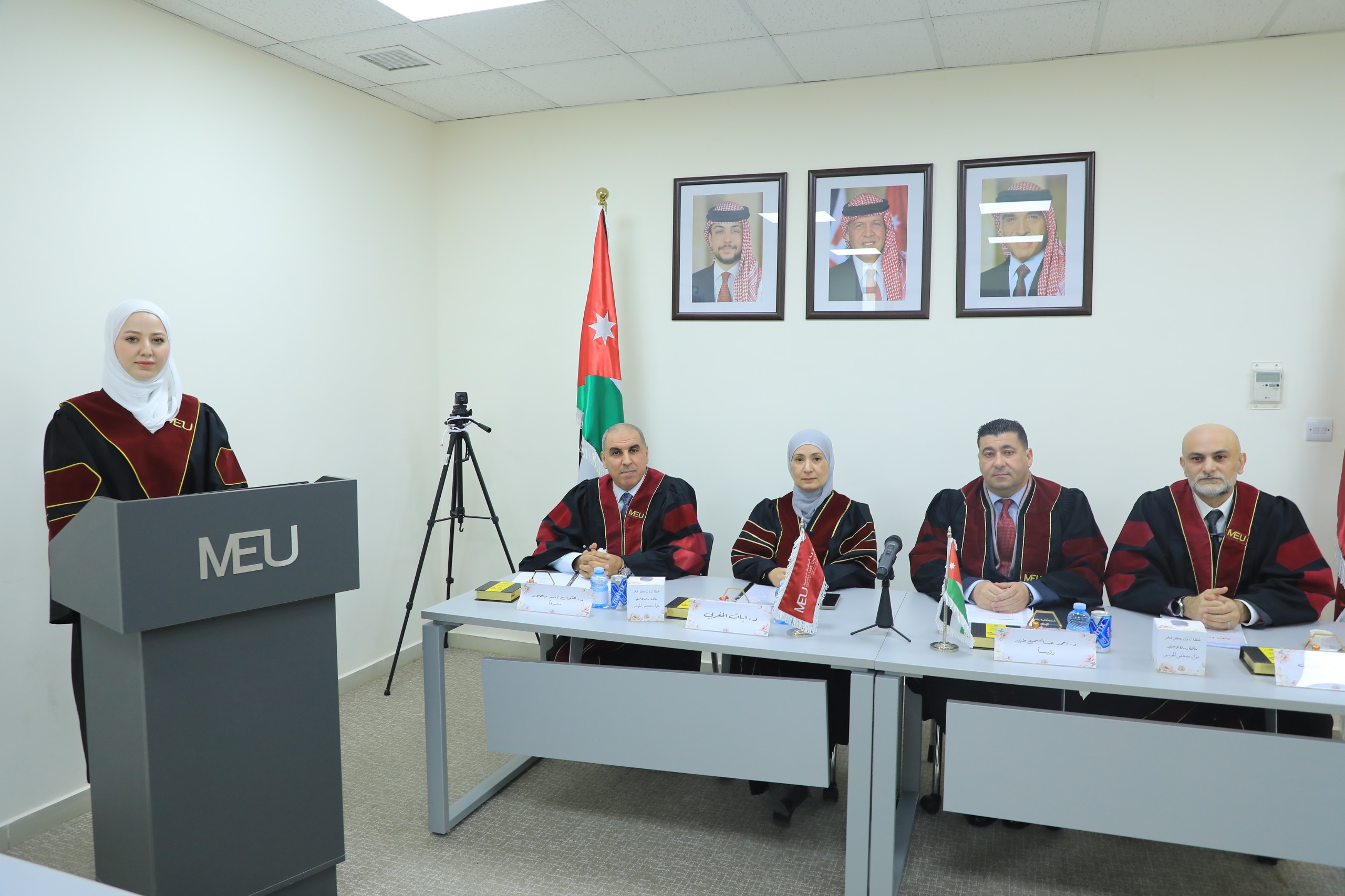 تشكلت لجنة المناقشة من الدكتور أحمد طبيه عضوًا ورئيسًا، والدكتور عثمان منصور مشرفًا، والدكتورة آيات المغربي عضوًا، والأستاذ الدكتور محمد أحمد الخطيب عضوًا من خارج الجامعة (الجامعة الهاشمية).