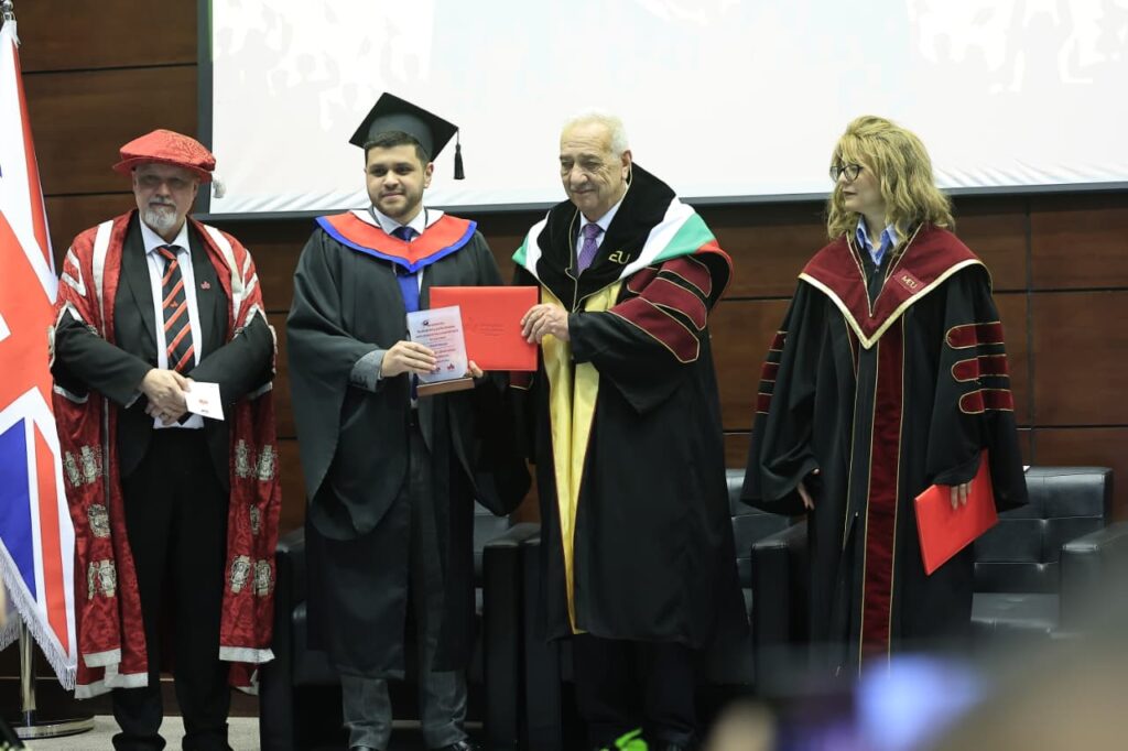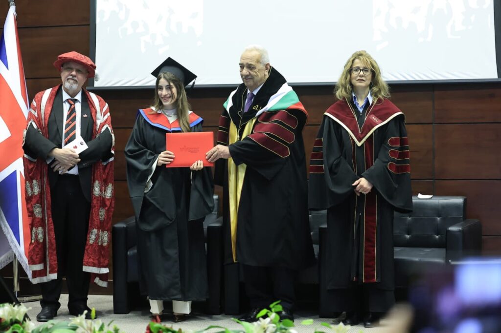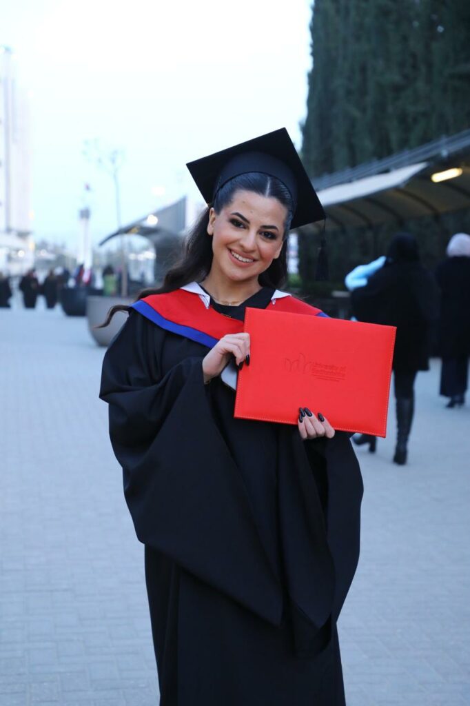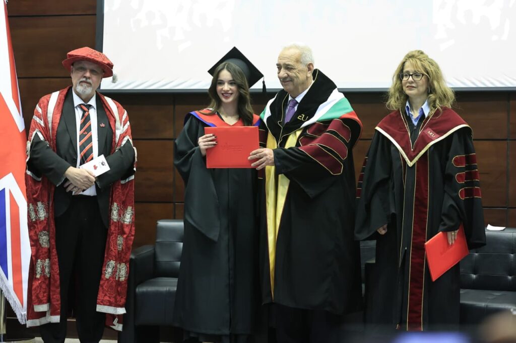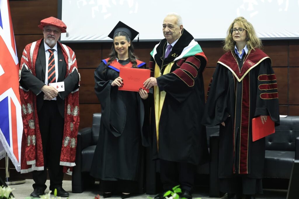 This institutional success was perhaps best exemplified by the graduates themselves. Representing the PhD of Business Administration cohort, Dr. Sarah Nasereddin described her graduation as the culmination of a decade-long journey. Through her engagement with the hosted PhD programme, she observed the profound value of this integrated educational model, proving that personal ambition remains attainable despite the complexities of multifaceted professional roles. In a similar vein, Sarah Hijjawi, speaking on behalf of the master’s and bachelor’s graduates, noted that receiving her postgraduate degree following her undergraduate studies at the same institution epitomised the spirit of academic continuity. Ultimately, she concluded that the challenges faced by the cohort served as the fundamental catalyst for their collective perseverance and success.