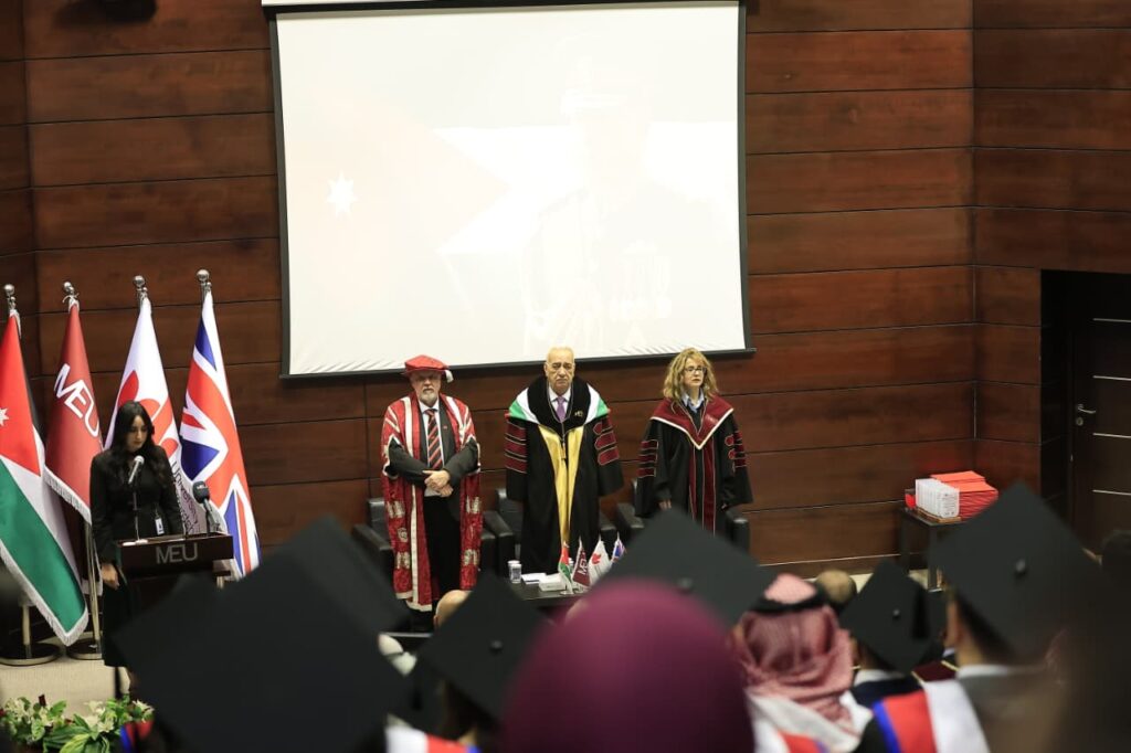 Under the patronage of Dr. Yacoub Nasereddin, Chairman of the Board of Trustees of Middle East University (MEU), a high-profile ceremony was convened to celebrate the graduation of students from the Bachelor’s, Master’s, and PhD programmes hosted in partnership with the University of Bedfordshire. The proceedings were conducted in the presence of distinguished figures, including Hazel Mabrey, the British Vice Ambassador; Professor Adrian Dutch, Pro Vice-Chancellor of the University of Bedfordshire; and Professor Salam Al-Mahadin, President of MEU. This congregation brought together a sophisticated assembly of diplomatic and academic dignitaries, members of the Board of Trustees and Board of Directors, university deans, and the families of the graduates.