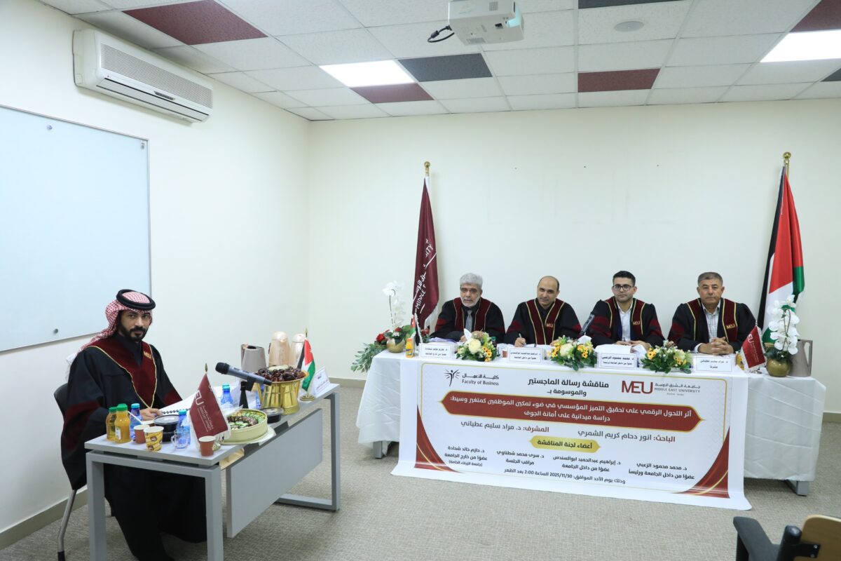 عمّان- نوقشت في كلية الأعمال بجامعة الشرق الأوسط رسالة ماجستير، بعنوان: أثر القيادة التحويلية في تعزيز التمكين الوظيفي: الدور المعدل للتحول الرقمي في وزارة البلديات والاسكان السعودية، للباحث سلطان الشمري، والتي هدفت إلى بيان أثر القيادة التحويلية في تعزيز التمكين الوظيفي: الدور المعدل للتحول الرقمي في وزارة البلديات والاسكان السعودية. أظهرت النتائج وجود