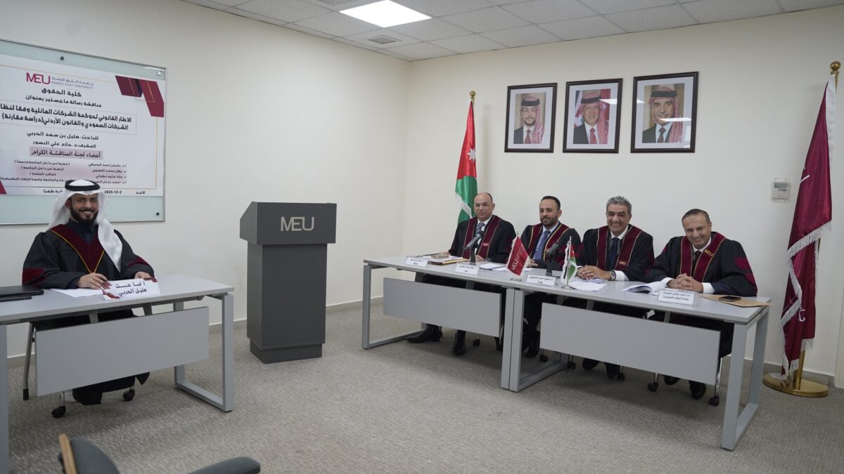 عمّان- نوقشت في كلية الحقوق بجامعة الشرق الأوسط رسالة ماجستير، بعنوان: القانوني لحوكمة الشركات العائلية وفقا لنظام الشركات السعودي والقانون الأردني: دراسة مقارنة، للباحث هليل الحربي، والتي هدفت إلى البحث في الإطار القانوني لحوكمة الشركات العائلية وفقا لنظام الشركات السعودي والقانون الأردني. وقد توصلت الدراسة الى عدد من النتائج أبرزها بيان أن المنظم