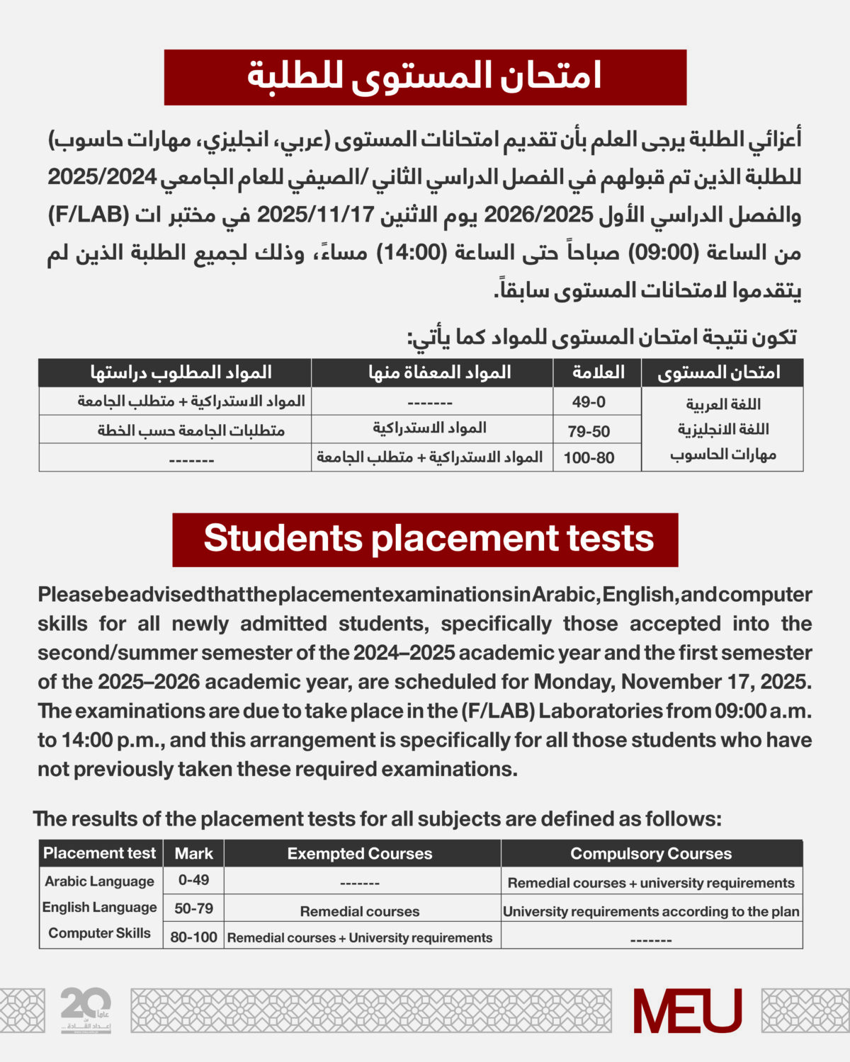 اعلان امتحان المستوى