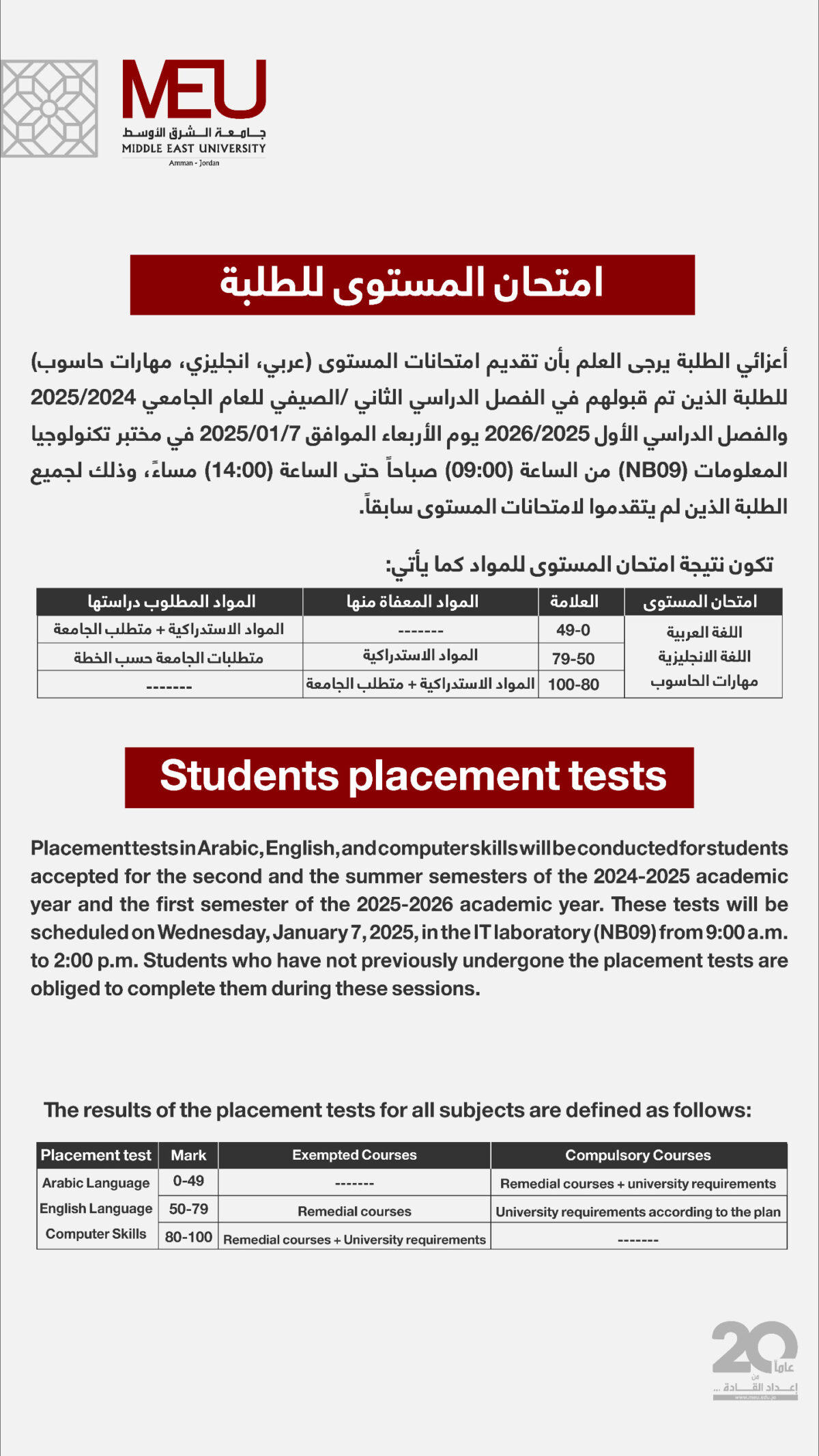 تعلن جامعة الشرق الأوسط عن توفر الشواغر التالية https://job.meu.edu.jo/?page_id=4105